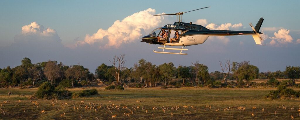 For a faster and very scenic arrival, helicopter transfers from Maun can be arranged with Helicopter Horizons.